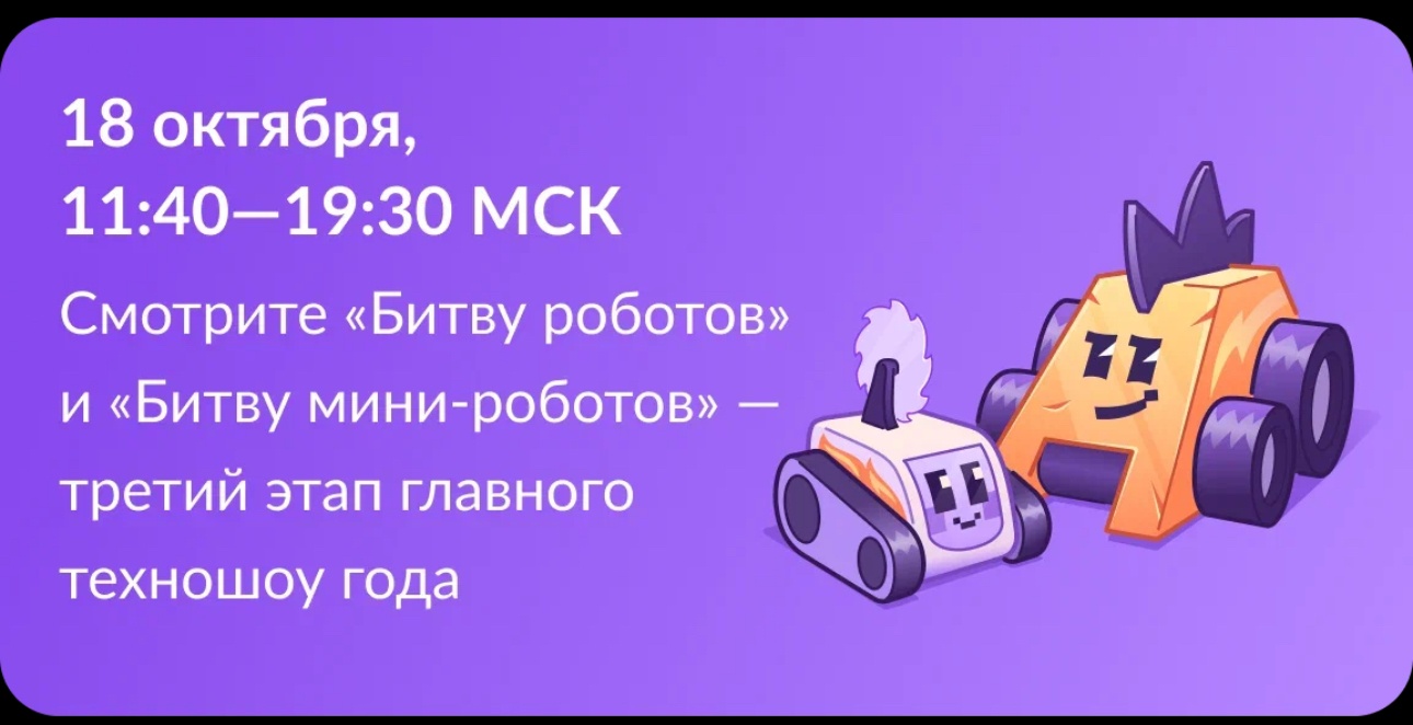 Битва роботов — чемпионат инженерных команд «Битва роботов» — это спортивно-технический чемпионат, в котором инженерные команды соревнуются в проектировании, сборке и сражениях своих роботов. Мероприятие направлено на развитие инженерного ...