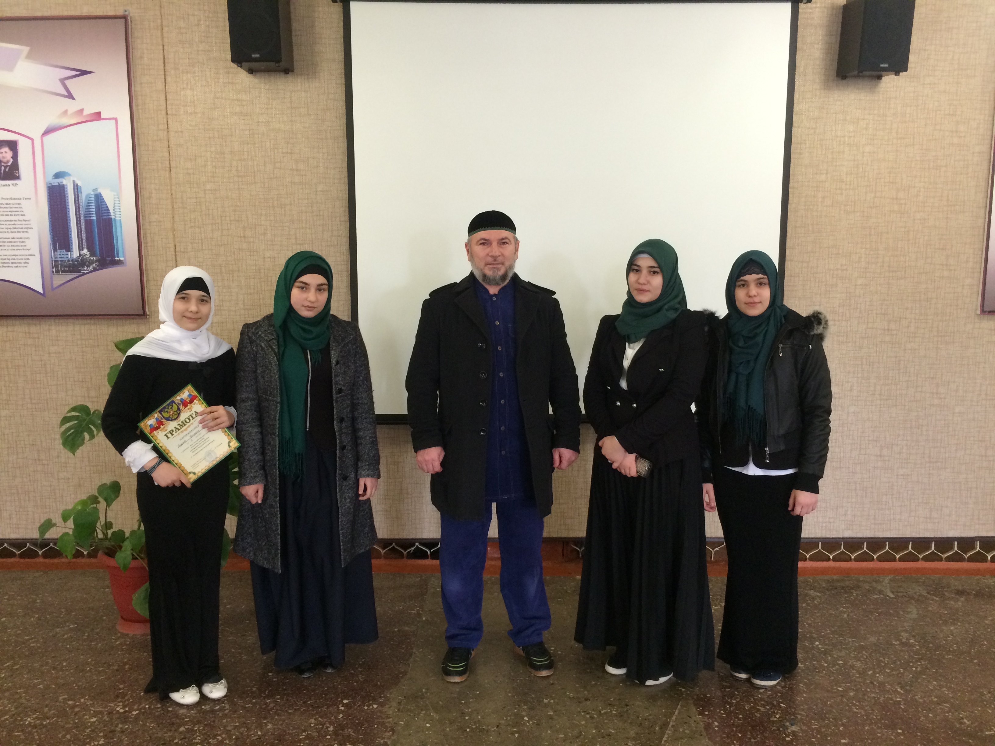 Проведен городской этап конкурса чтения нашидов. В нем участвовали уч-ся нашей школы Гацаева Дагмара (5 б кл) заняла 2 место.