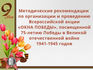 Данные методические рекомендации определяют подход к проведению Всероссийской акции «Окна Победы», посвящённой 75-летию Победы в Великой Отечественной войне 1941-1945 года (далее - Акция).