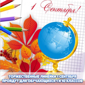 Торжественная линейка для учащихся 1-ых и 10-ых классов состоится 1 сентября 2020 года в 09.30.