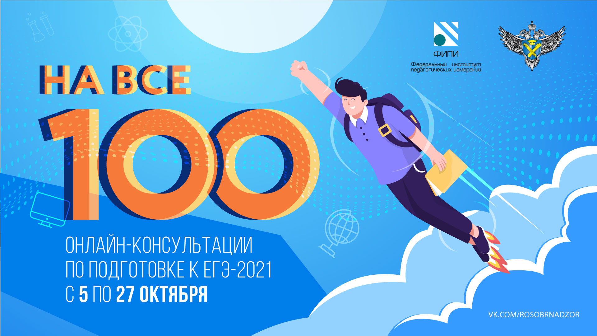05.10.2020Разработчики контрольных измерительных материалов ЕГЭ из Федерального института педагогических измерений (ФИПИ) в октябре проведут серию онлайн-консультаций «На все 100!» для будущих участников экзаменов.