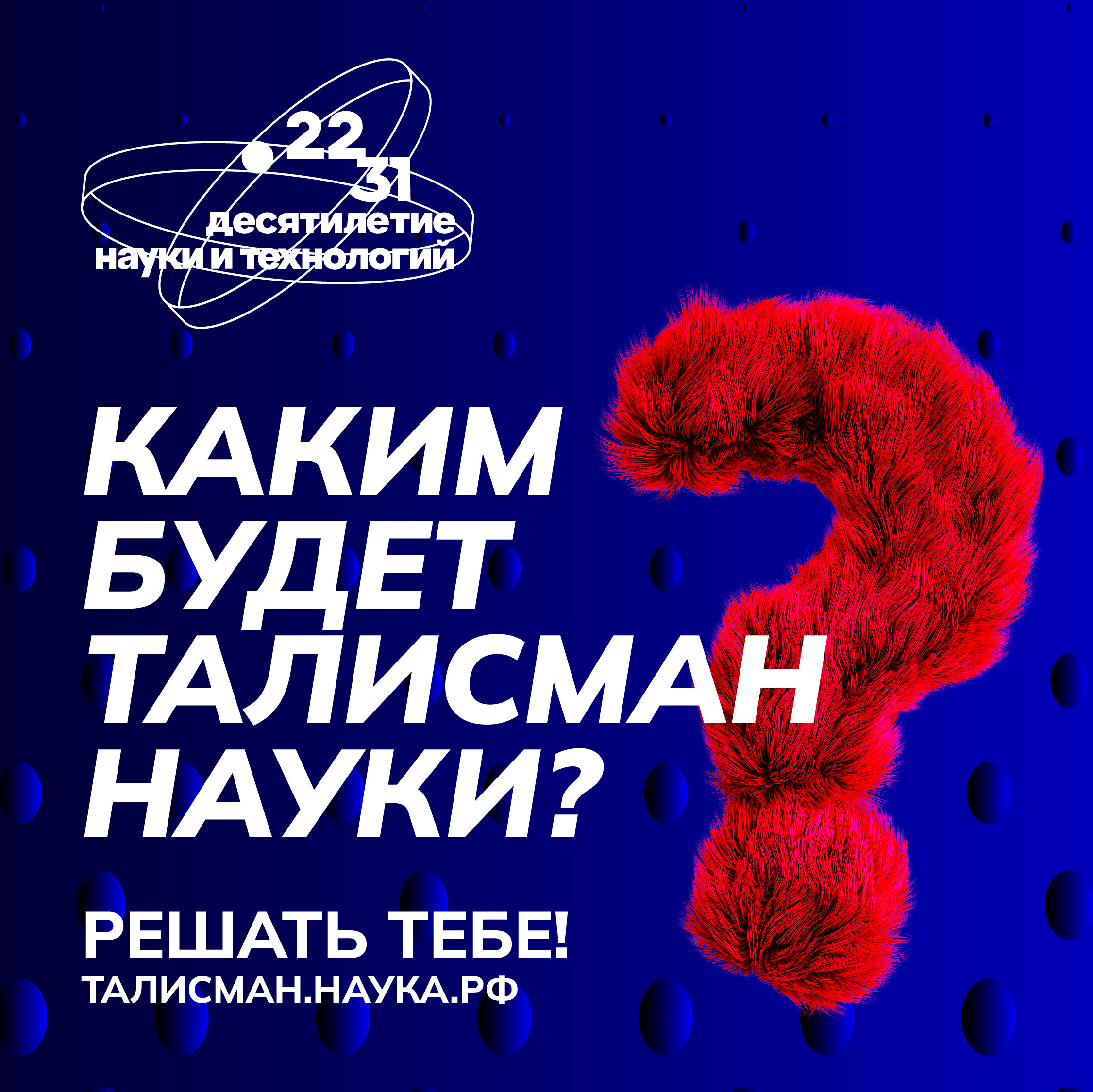 23 июня стартует всероссийский конкурс на определение Талисмана Десятилетия науки и технологий. Принять участие в конкурсе может любой житель страны. Для этого необходимо до 31 июля включительно загрузить свой вариант Талисмана с коротким рассказом о нем на страницу конкурса талисман.наука.рф.