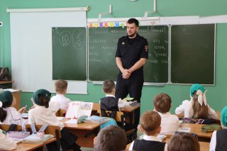 Начальник пропаганды безопасности дорожного движения Госавтоинспекции ЧР Мадаев Ибрагим и старший инспектор отделения пропаганды безопасности дорожного движения Госавтоинспекции ЧР Артур Цугаев провели профилактическую беседу с обучающимися МБОУ «СОШ №14» г.Грозного в рамках недели БДД.