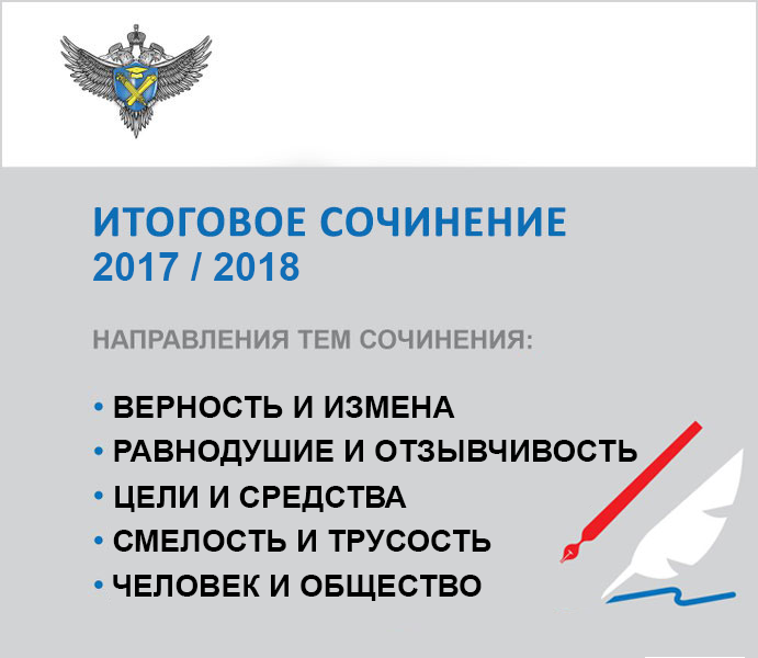 02.12.20176 декабря 2017 года будет проведено итоговое сочинение для выпускников 11-х классов. Данное сочинение будет оцениваться по системе зачёт/незачёт. Для допуска к ЕГЭ нужно получить зачёт. При получении незачёта будет ещё две попытки в первые среды февраля и мая (7 февраля и 2 мая).