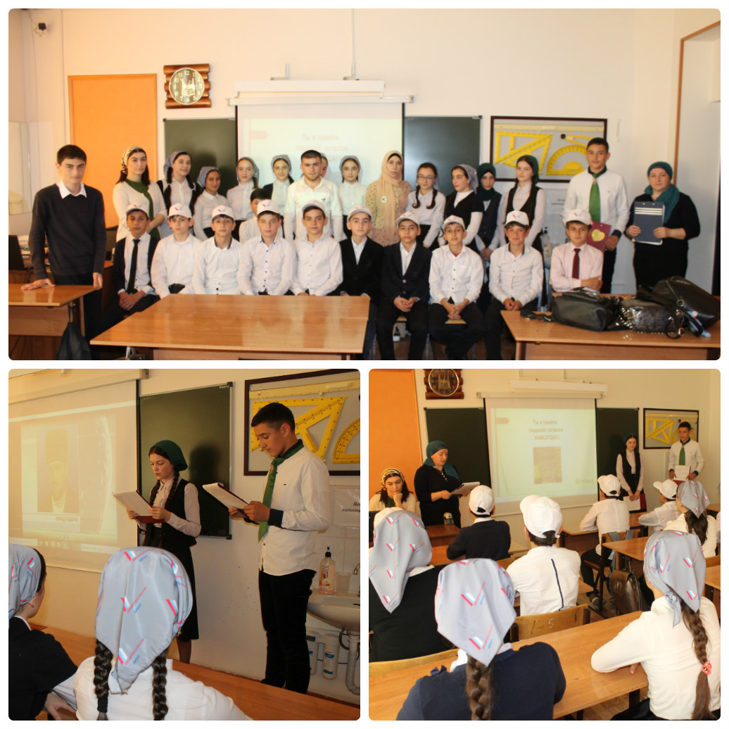 05.05.2018С целью гражданско-патриотического воспитания подрастающего поколения 5 мая в МБОУ «СОШ № 14» проведены Уроки мужества, посвященные Первому Президенту ЧР А.-Х. Кадырову. На мероприятии присутствовали представители Общероссийского народного фронта в ЧР в лице зам.координатора команды «Молодёжки ОНФ» Амерхановой П., активиста Шадралиева А., координатора по оргвопросам Дадуева С-М.