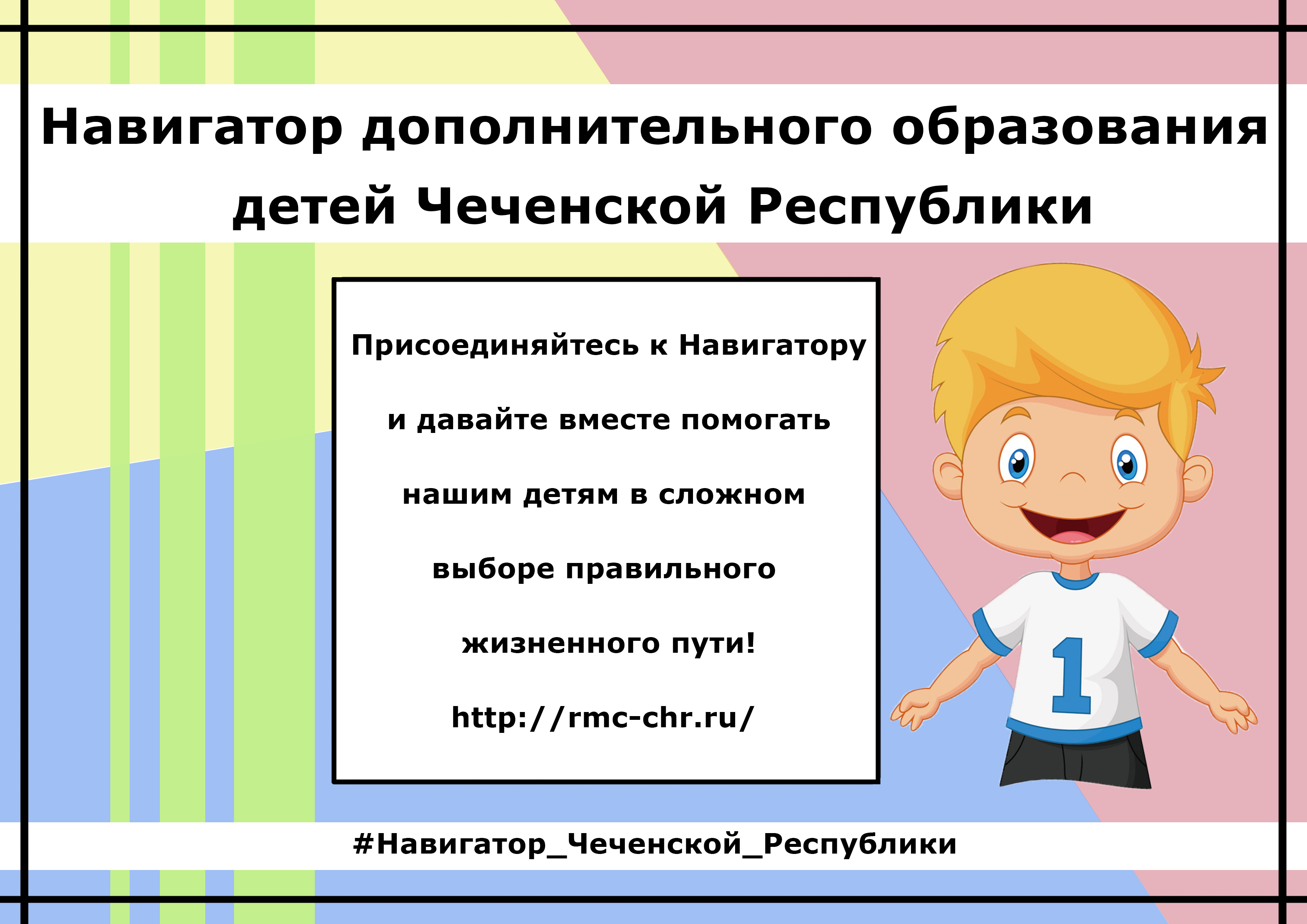 07.08.2018Информация для размещения на сайтах школ: В Чеченской Республике начинает работу навигатор по дополнительным общеобразовательным программам для школьников.Навигатор дополнительного образования - это единая база кружков, секций, объединений различной направленности для детей всех возрастов. Каждый сможет найти занятие по душе, исходя из собственных предпочтений, пожеланий и способностей.Портал создан на технологиях Inlearno, в рамках приоритетного проекта "Доступное дополнительное образование для детей".Присоединяйся к Навигатору и давайте вместе помогать нашим детям в сложном выборе правильного жизненного пути http://rmc-chr.ru/ #Навигатор_Чеченской_Республики